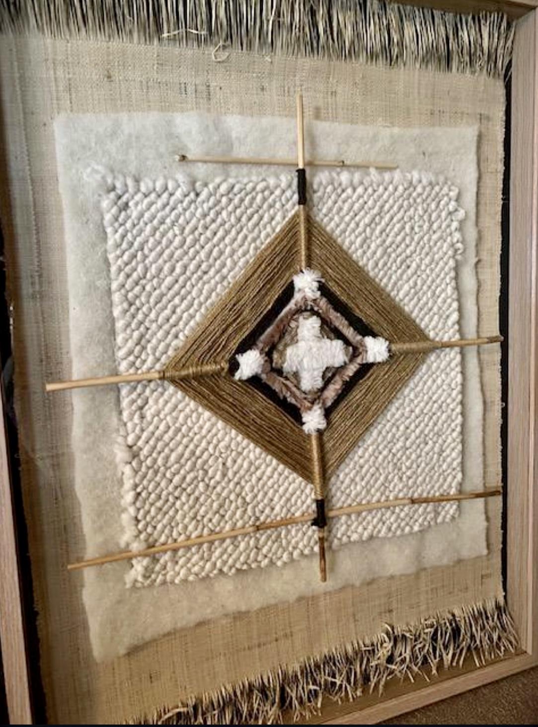 Oeil de Dieu 1 Artiste : Hélène Eloy Série 2022- Oeil de Dieu Technique mixte, raphia, laine, bambou 80/60cm